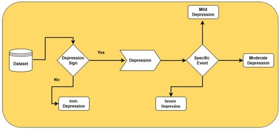 To collect data from Twitter, we utilized the Tweepy API, a Python library that enables developers to access tweets, user data, trends, and other features of the Twitter platform. To distinguish between depression and non-depression content, we employed a variety of targeted keywords, covering terms related to “non-depression,” “mild depression,” “moderate depression,” and “severe depression.” This allowed us to extract tweets containing relevant terms and gather real-time data on user engagement, sentiment, and discussions around these topics.