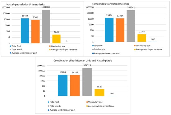 Amidst this growing body of literature, a clear gap emerges: while some studies have used Roman Urdu [,] and a few have mixed languages like English and Roman Urdu [,], none have ventured into systematically combining Roman Urdu with Standard Urdu written in Nastaliq script, particularly using script-conversion methods. Our proposed work directly addresses this limitation by constructing a novel bilingual, script-converted, and code-mixed dataset that integrates both Roman Urdu and Nastaliq Urdu. By converting Standard Urdu to both Roman and Nastaliq forms and then merging them, we provide a harmonized dataset that captures real-world language diversity far more comprehensively than any previous effort.