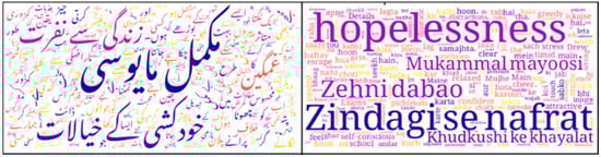 Depression detection using NLP has gained considerable attention in high-resource languages; however, code-mixed Roman Urdu and Nastaliq Urdu remain largely overlooked due to their unique linguistic characteristics, limited resources, and scarcity of high-quality annotated datasets. Urdu, the national language of Pakistan and spoken by over 230 million people globally [], holds significant cultural and historical importance in literature, poetry, and social media communication. In particular, code-mixed Roman Urdu is widely used across South Asia, especially on social media and messaging platforms, as a popular medium for expressing personal thoughts and emotions []. However, it poses significant challenges for NLP models because of its non-standardized spelling, multiple word variations, and structural inconsistencies. On the other hand, Nastaliq Urdu—written in the Perso-Arabic script and deeply rooted in cultural and linguistic heritage—offers greater structural consistency but remains underrepresented in computational linguistics research. Consequently, existing depression detection models often fail to capture the linguistic diversity and informal nature of user-generated content in these forms of Urdu. Addressing these complexities is therefore essential for developing effective and inclusive automated depression assessment systems that can better serve diverse linguistic communities.