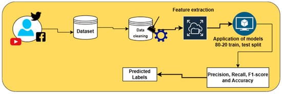 After training, we evaluated all models using Precision, Recall, F1-score, and Accuracy, enabling us to identify the most effective approach for our classification problem. Figure 7 illustrates the entire workflow of model application, training, and testing phases utilized in this study.