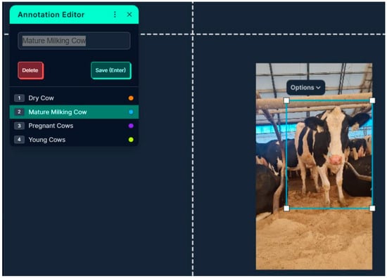 Figure 2 illustrates the comprehensive annotation process, demonstrating the systematic approach to bounding box placement and class labeling for different physiological states of cattle. This visual representation showcases the precision required in manual annotation to ensure high-quality training data for the YOLOv11 model.