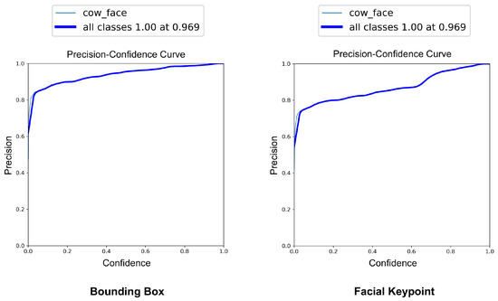 Precision vs. confidence curves for YOLOv8-based cow face detection and keypoint detection.
