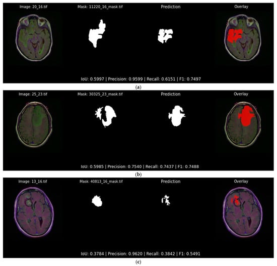 Lower-grade gliomas (LGGs) are diffuse primary brain tumors classified by the World Health Organization (WHO) as grade II or III. They typically grow more slowly than grade IV glioblastomas, yet still pose serious clinical challenges due to their invasive nature []. Patients with LGG often suffer seizures, neurological deficits, and cognitive impairment [,]. Magnetic Resonance Imaging (MRI) is the modality of choice for brain tumor evaluation, providing detailed soft-tissue contrast needed to visualize tumor extent. Accurate MRI-based segmentation of LGGs can quantify tumor size, shape, and location, information essential for treatment planning and assessing response []. However, manual segmentation by experts is labor-intensive and prone to inter-observer variability, motivating the need for automated, reliable tumor segmentation methods [].