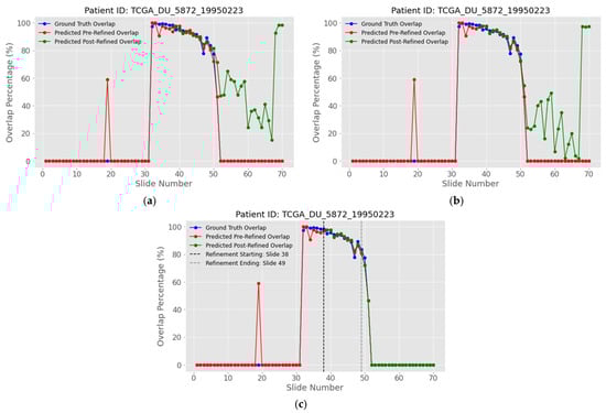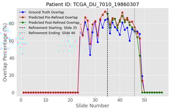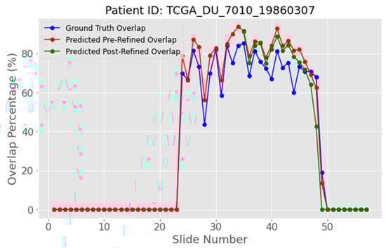 To balance accuracy and efficiency, this study explores the possibility of adopting a 2D U-Net with a lightweight voting mechanism and a post-processing refinement rather than a fully 3D model. Simple heuristic refinements have proven to remove False Positives (FP) and enforce spatial consistency []. Building on that insight, we design a white-area-overlap voting mechanism that detects the tumor’s peak slice via Gaussian smoothing and then prunes or augments only the most ambiguous softmax pixels in the post-peak region. We systematically compare two U-Net variants, various loss functions and alternative refinement thresholds, asking whether such a modest, slice-aware correction can lift 2D performance to levels usually reserved for heavier 3D models, without incurring their computational cost.