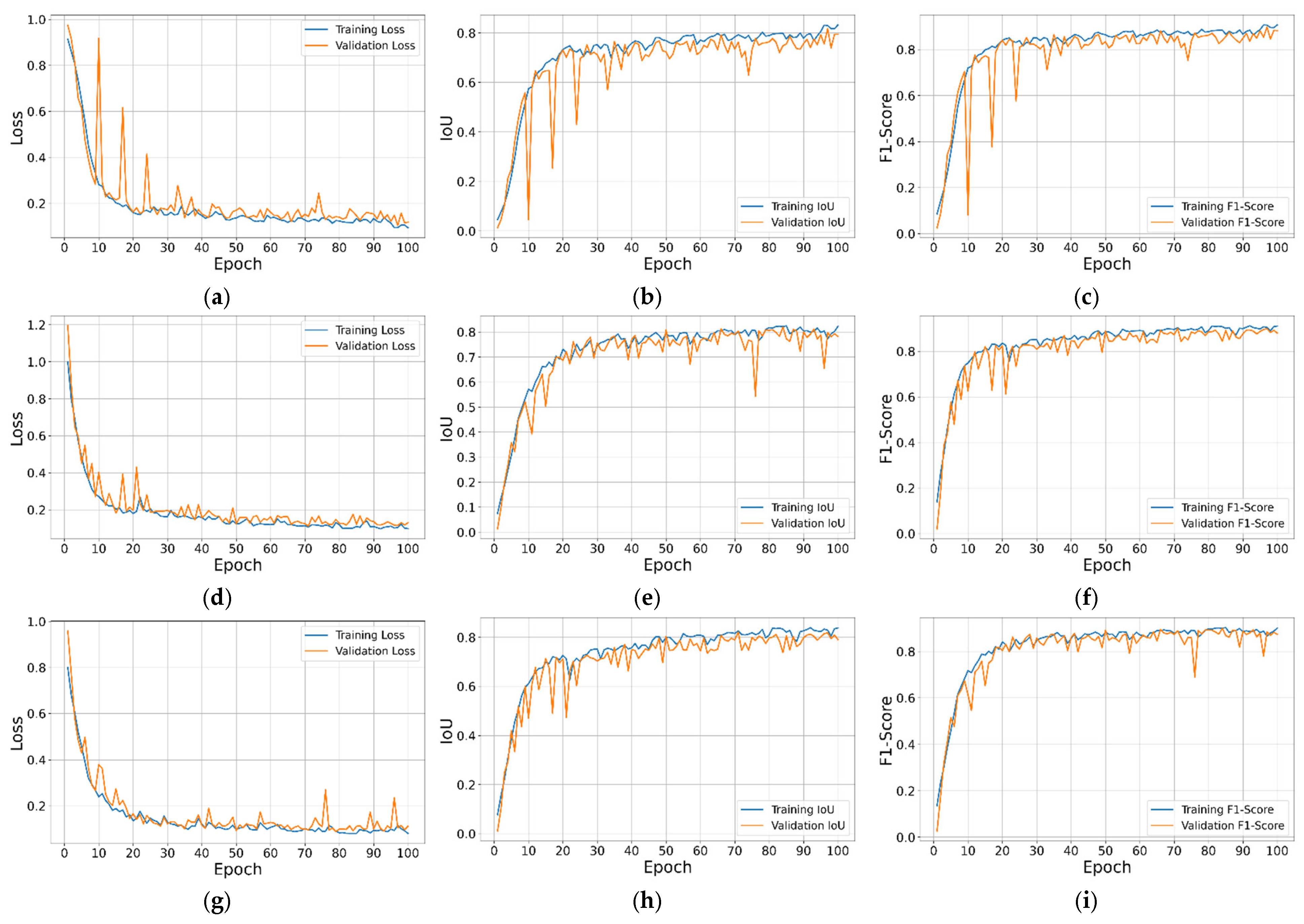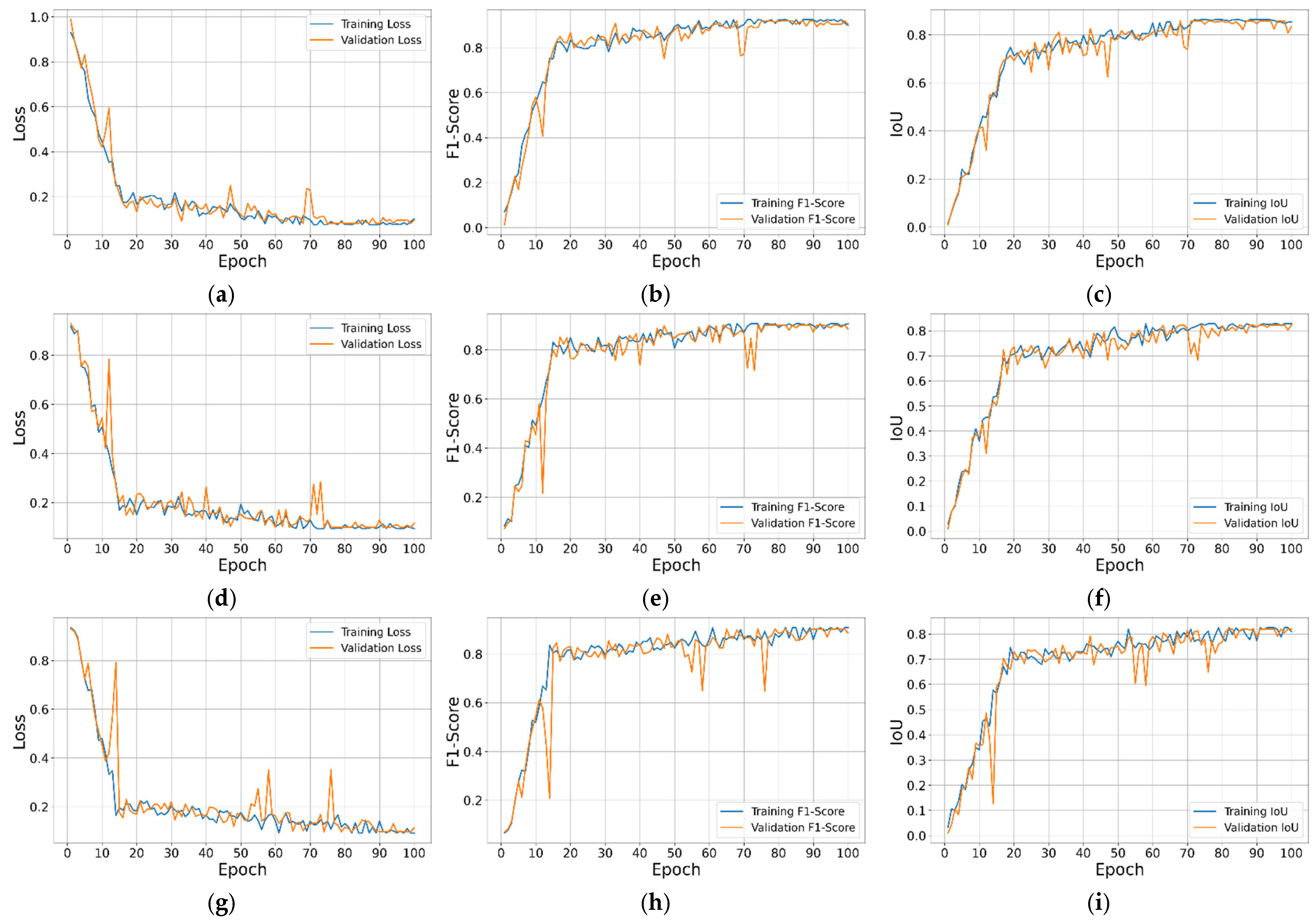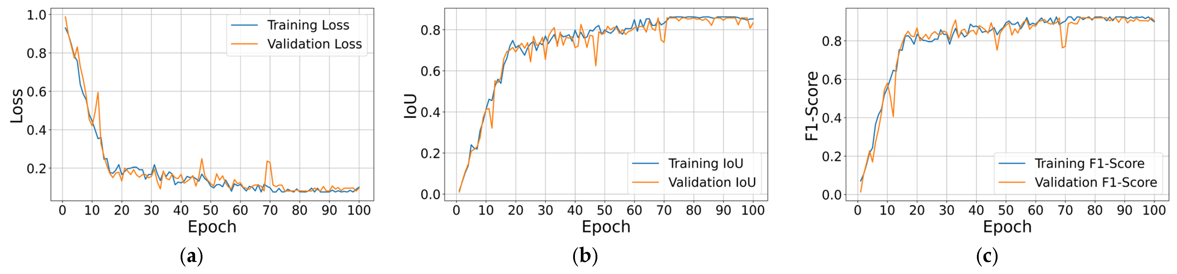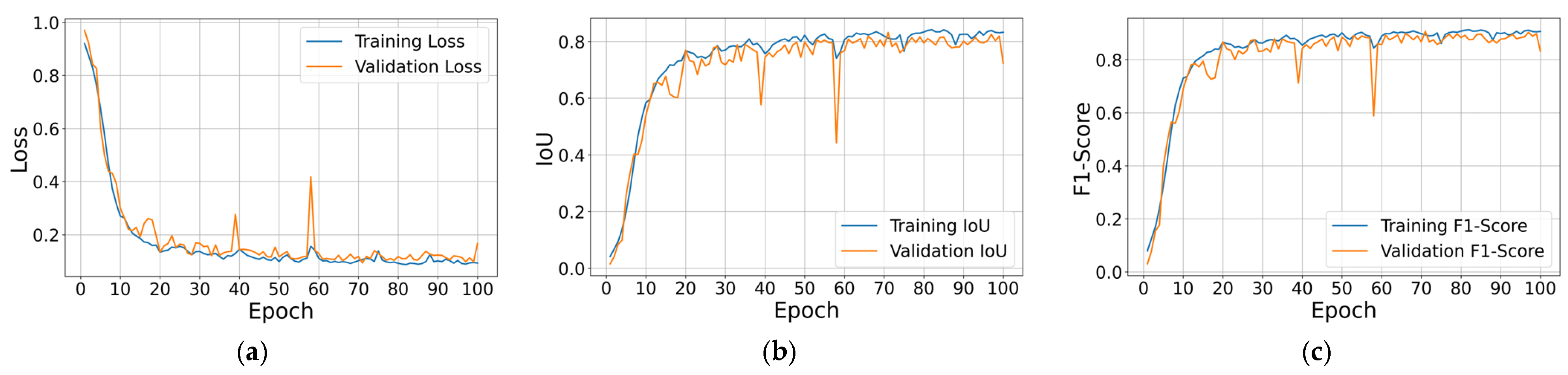 - Sudre, C.H.; Li, W.; Vercauteren, T.; Ourselin, S.; Jorge Cardoso, M. Generalised Dice Overlap as a Deep Learning Loss Function for Highly Unbalanced Segmentations. In Deep Learning in Medical Image Analysis and Multimodal Learning for Clinical Decision Support; Cardoso, M.J., Arbel, T., Carneiro, G., Syeda-Mahmood, T., Tavares, J.M.R.S., Moradi, M., Bradley, A., Greenspan, H., Papa, J.P., Madabhushi, A., Eds.; Springer International Publishing: Cham, Switzerland, 2017; pp. 240–248. [Google Scholar] [CrossRef]