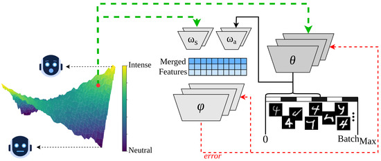 This improvement is corroborated by works which have achieved greater performances from autonomous emotion-mediated parameter optimization. For example, works on the prediction error, learning rate, or actual reward have presented emotional modulation based on the difference between short- and long-term average of reward entropy over time [15] or emotion quantization as a linear combination of separate power levels [16]. A mere difference in visual stimuli has also been made to influence valence–arousal pairs [17,18], which then affect learning parameters. Moreover, the basing of emotion metalearning techniques on neurophysiology, where researchers strive to replicate limbic circuitry and neuromodulation, has been shown to provide performance advantages in decision-making [3]. It is a type of strategy that benefits from interdisciplinarity, yet it is uncommon. As such, it could provide an edge when developing new parameter calculation techniques and contribute to emotion-mediated AI progress.