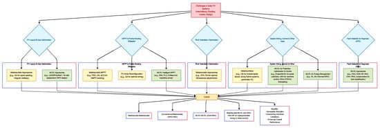 - The application of the Preferred Reporting Items for Systematic Reviews and Meta-Analyses guidelines (PRISMA)-compliant systematic review methodology, enabling the identification, filtration, and synthesis of 314 high-quality studies relevant to PV optimization, with a strong emphasis on structural, operational, and topological improvements.