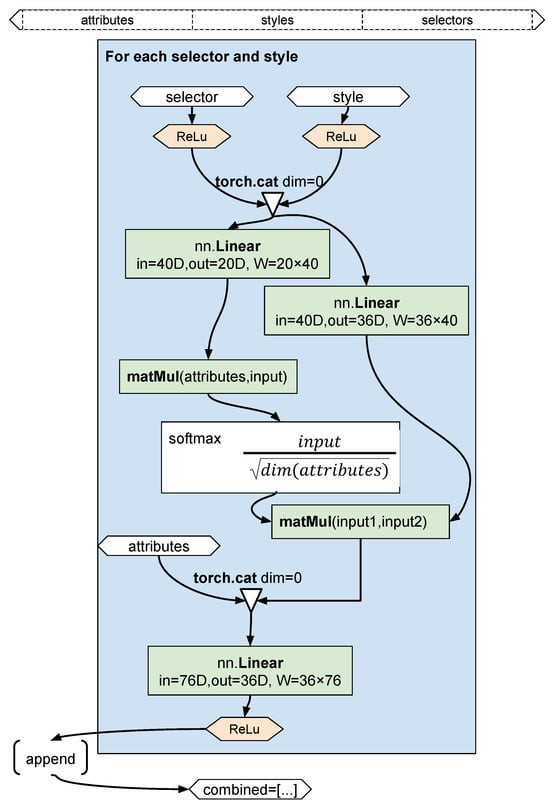 - Encoded Selectors: An array of tensors of the same length as the encoded styles array, where each element at a given position in this array corresponds directly to the style element at the same position in the style array. This links styles to their specific selectors for that element.