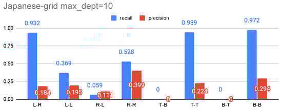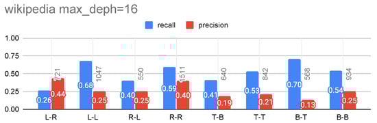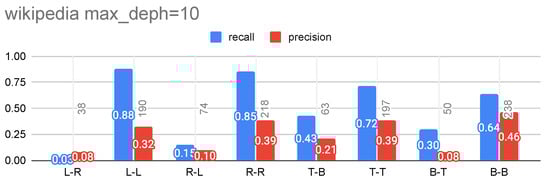 The models showed good results in recognizing spatial relationships between elements, with recall ranging from 0.35 to 0.979 and precision from 0.1 to 0.46. The low precision was a trade-off for achieving higher recall in this multi-label classification problem. Furthermore, precision varies significantly across different spatial relationships. Some relationships are inherently more complex and difficult to assess accurately. For instance, relationships between elements involving complex CSS layouts or elements with smaller dimensions are challenging to classify with high precision. The lower precision scores (e.g., 0.10) are often associated with these more ambiguous cases. The fact that the model still identifies most of the relationships (high recall) is what we consider a successful outcome for our application. While these results could have been improved with more training and a larger dataset, even with these values, the model has been successfully applied to the problem of web page similarity assessment.