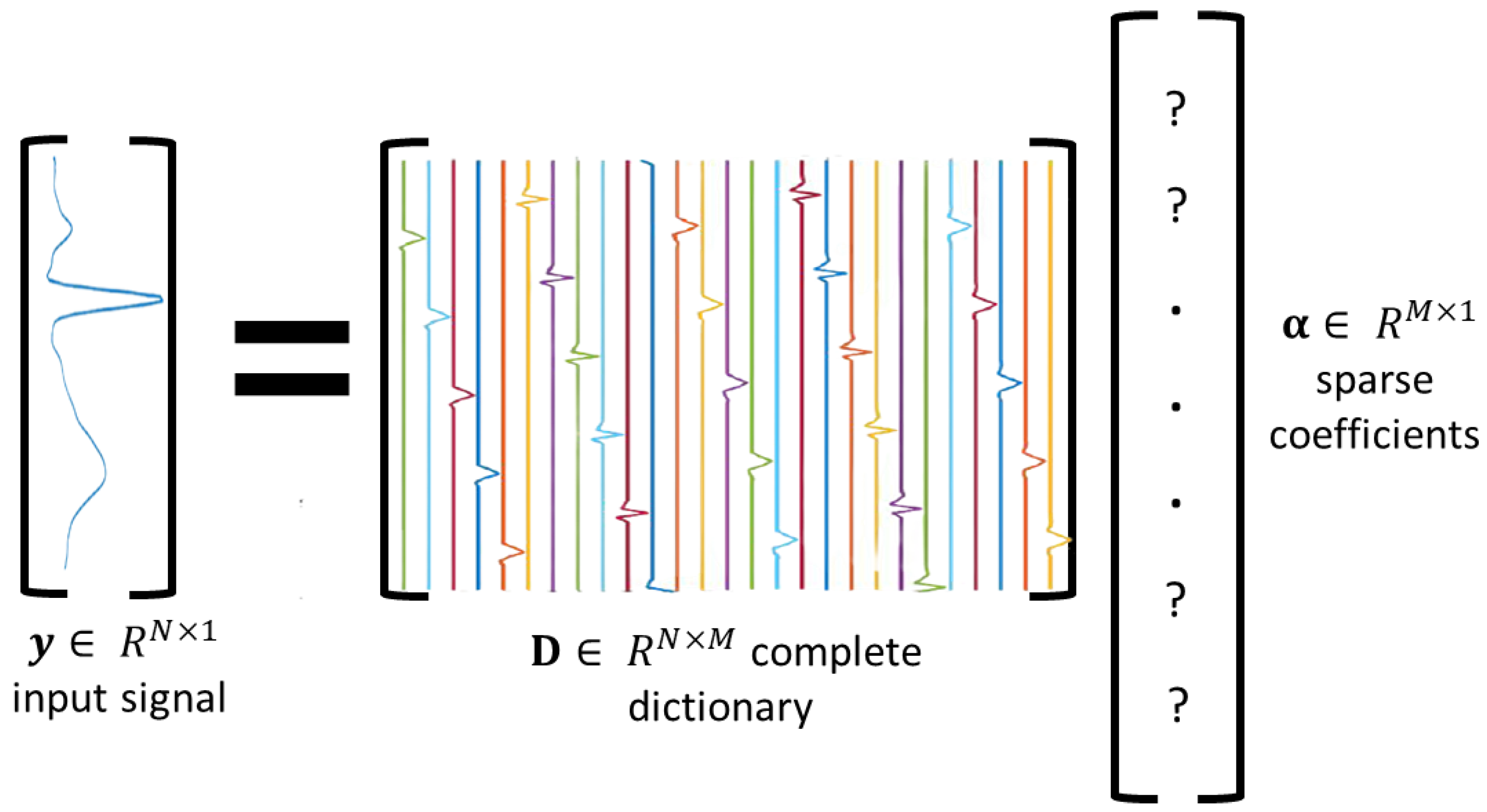 represents the threshold for the allowable reconstruction error. In this work, the matching pursuit algorithm is primarily employed due to its simplicity and computational efficiency. Since the focus is on biomedical signals, such as ECG, the error threshold