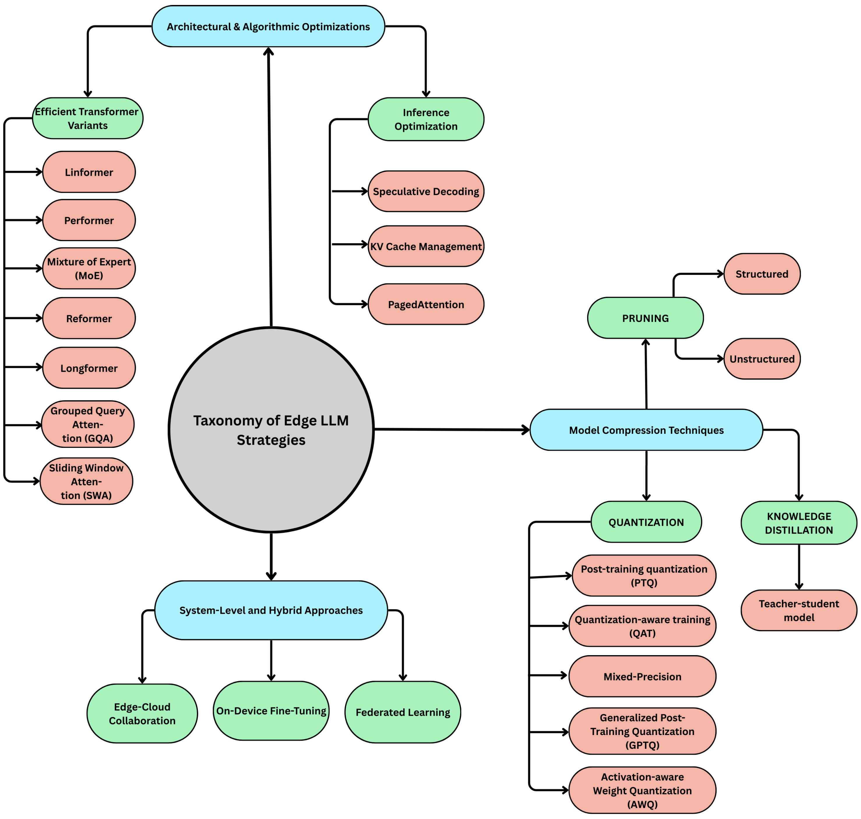 - System-Level and Hybrid Approaches: We will examine strategies that go beyond single-model optimization to improve overall system performance. This includes an overview of hybrid edge-cloud systems, on-device fine-tuning techniques (e.g., Parameter-Efficient Fine-Tuning or PEFT), and federated learning applications for LLMs on the edge.