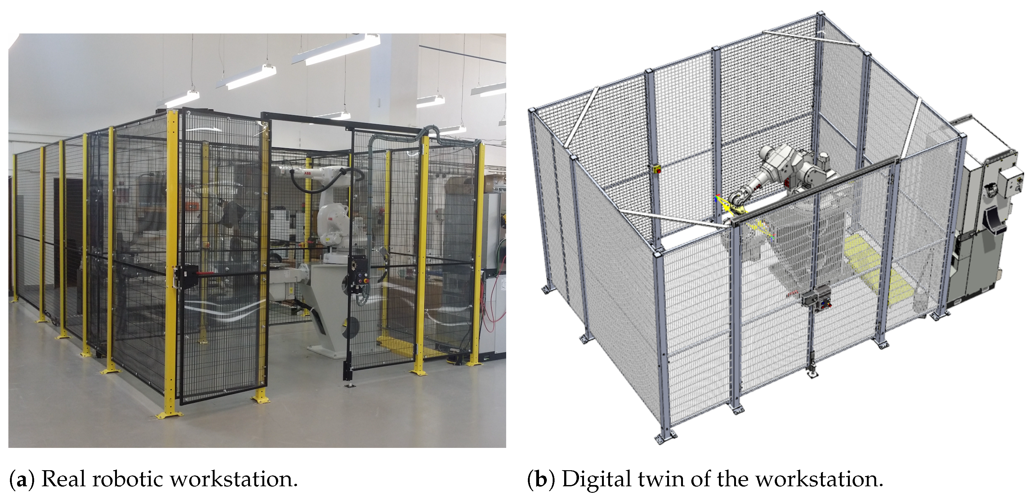 The experimental evaluation was carried out in a virtual environment created in ABB RobotStudio, which was designed as an exact digital twin of the real robotic workstation (see