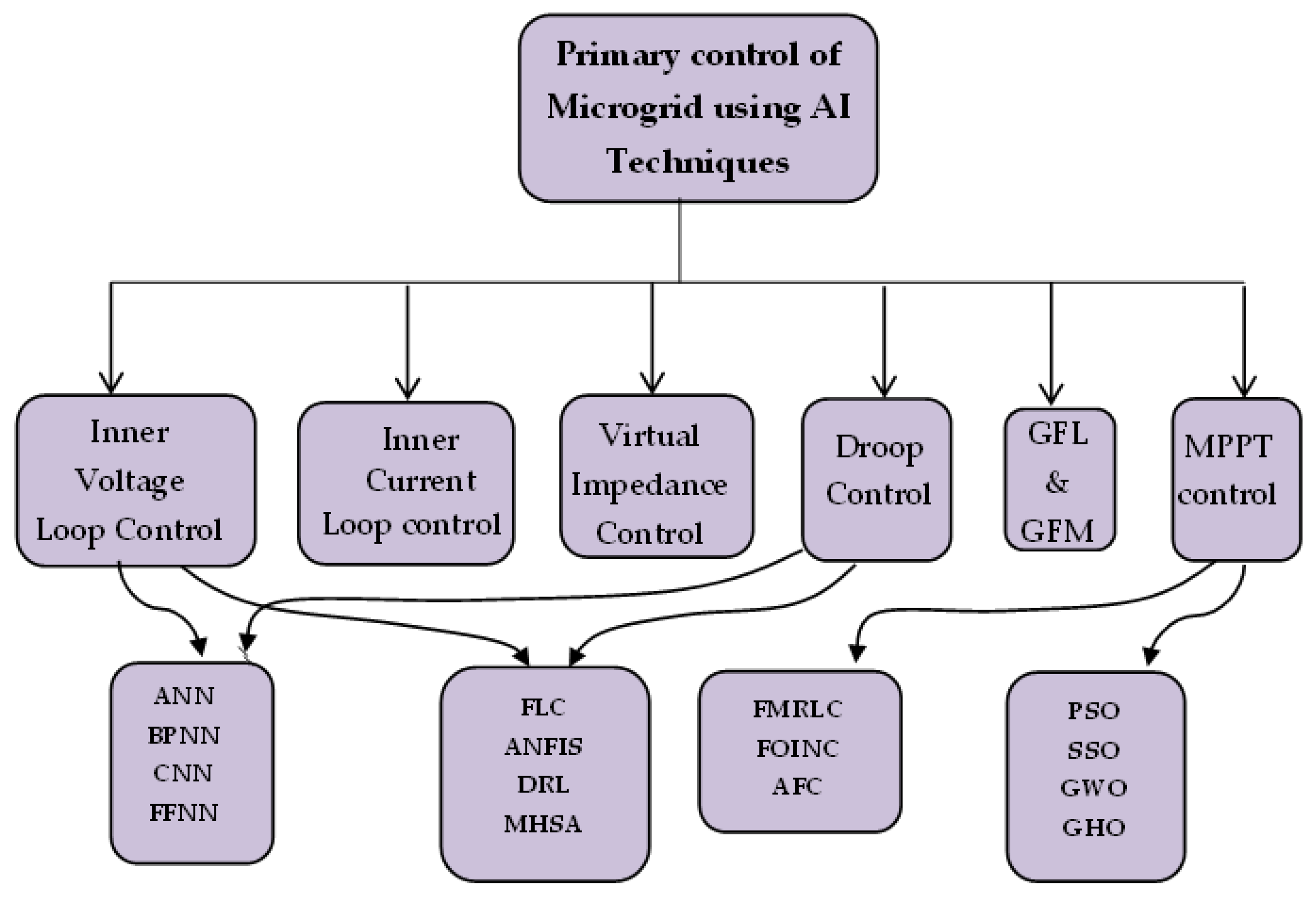 62] for regulating the output voltage with minimum deviations to improve the performance of the VSI. In addition, they incorporated an additional droop control for power sharing among the DGs. The application of AI techniques in primary control of MG is summarised in the