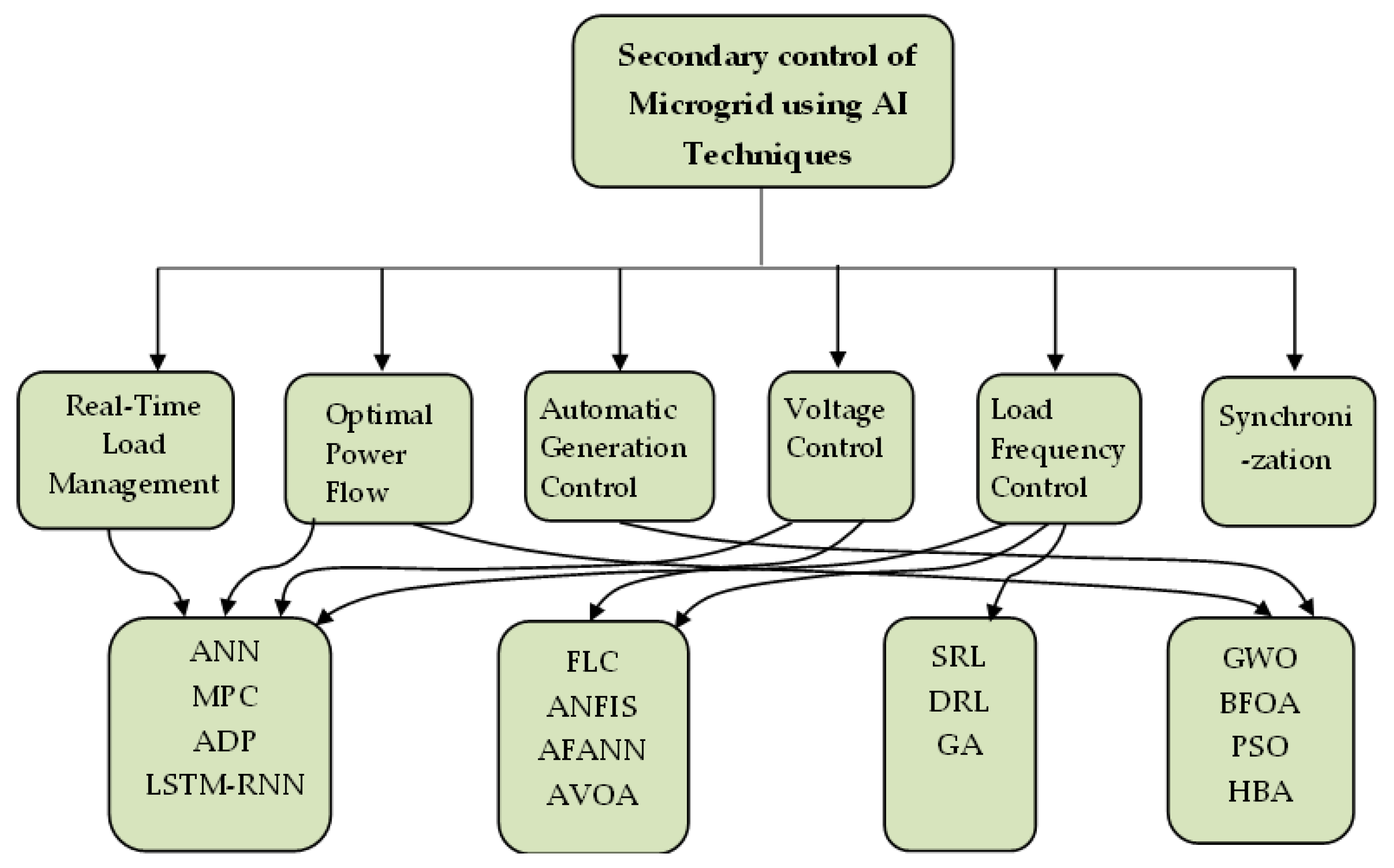17]. In addition, they can effectively compensate for the performance of the system in the event of a disturbance which is more important from the MG point of view, as it is regularly subjected to various disturbances. Therefore, researchers are now focusing on utilising them to effectively control MG. This paper mainly focuses on the application of these AI techniques for CHC at each level.