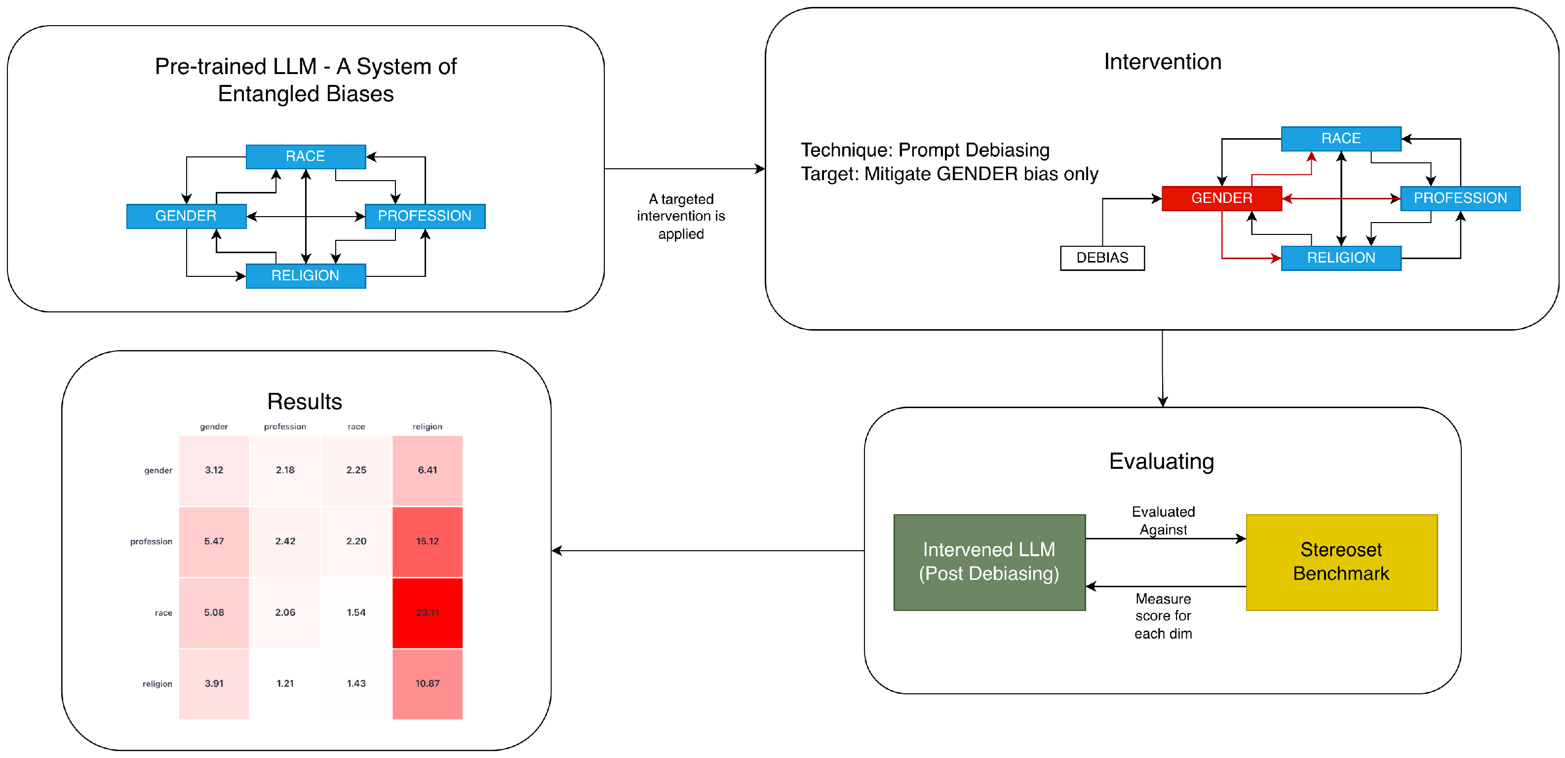 - Evaluate debiasing interventions across all relevant bias dimensions, not just the target.