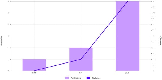 A targeted search in the Web of Science database using the query TS = (“FUZZY C-MEANS”) AND TS = (“CLUSTERING”) AND (TS = (“XAI”) OR TS = (“INTERPRETABLE MACHINE LEARNING”)) yielded only a handful of relevant publications, mostly concentrated in the past three years. This is visualized in Figure 4, showing a modest but consistent upward trend.