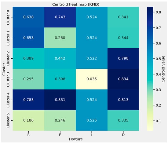The behavioral model used in this study is based on the RFID structure, which encodes four dimensions of customer interaction: Recency (R), Frequency (F), Importance (I), and Duration (D). Each variable is derived from raw interaction data and plays a specific role in describing the customer’s relationship with the support service.