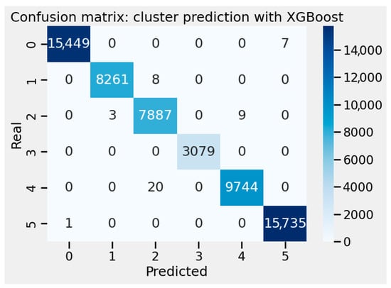 The classifier is trained using the XGBoost algorithm [29], which builds an ensemble of optimized decision trees via gradient boosting. The model estimates a mapping: