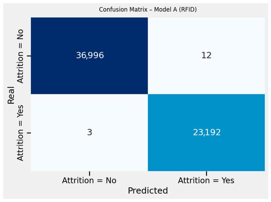 The attrition prediction models based on XGBoost (Model A—RFID; Model B—RFID + Fuzzy) achieved exceptional predictive performance, with both configurations obtaining Accuracy and ROC-AUC values close to 1.0. The inclusion of fuzzy membership variables did not alter overall accuracy but improved the explainability of the system, providing additional insight into intermediate or transitional states between engagement and dropout.