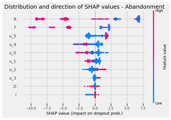 SHAP is a model-agnostic method based on cooperative game theory that attributes the prediction of a model to each feature according to its marginal contribution [31]. For a given instance , the SHAP value for feature j is defined as: