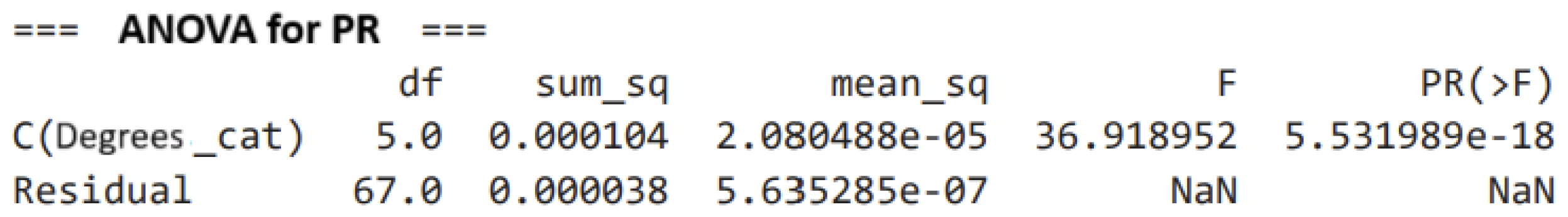 Overall, the statistical analysis confirms that the behaviour of PR is aligned with the previous polynomial model and with the PVsyst simulation results, strengthening the validity of the angular optimisation method employed [