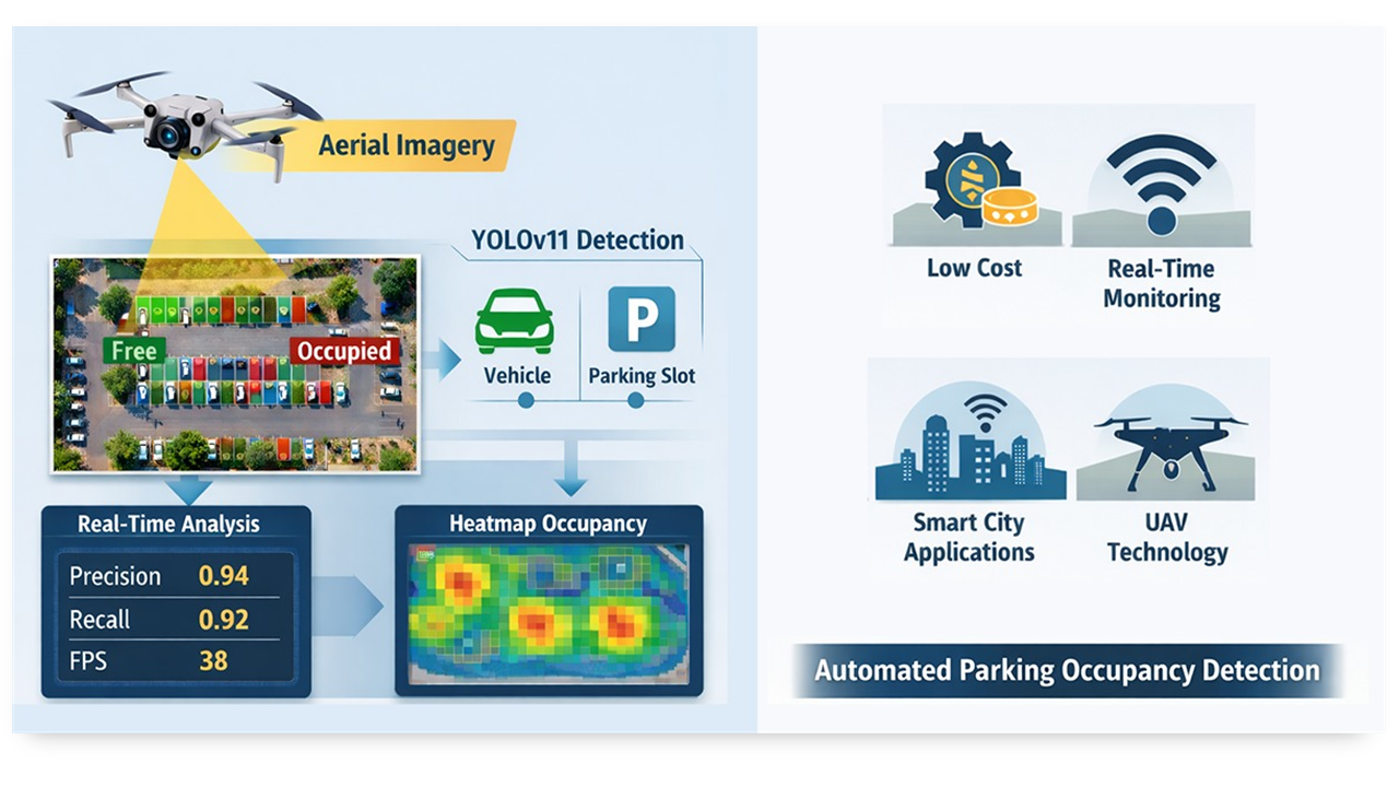 6] have demonstrated that drones with object-detection models can estimate parked vehicle occupancy with high accuracy, exceeding 90%. Unlike fixed cameras, drones offer mobility, vertical aerial vision, and less dependence on infrastructure.