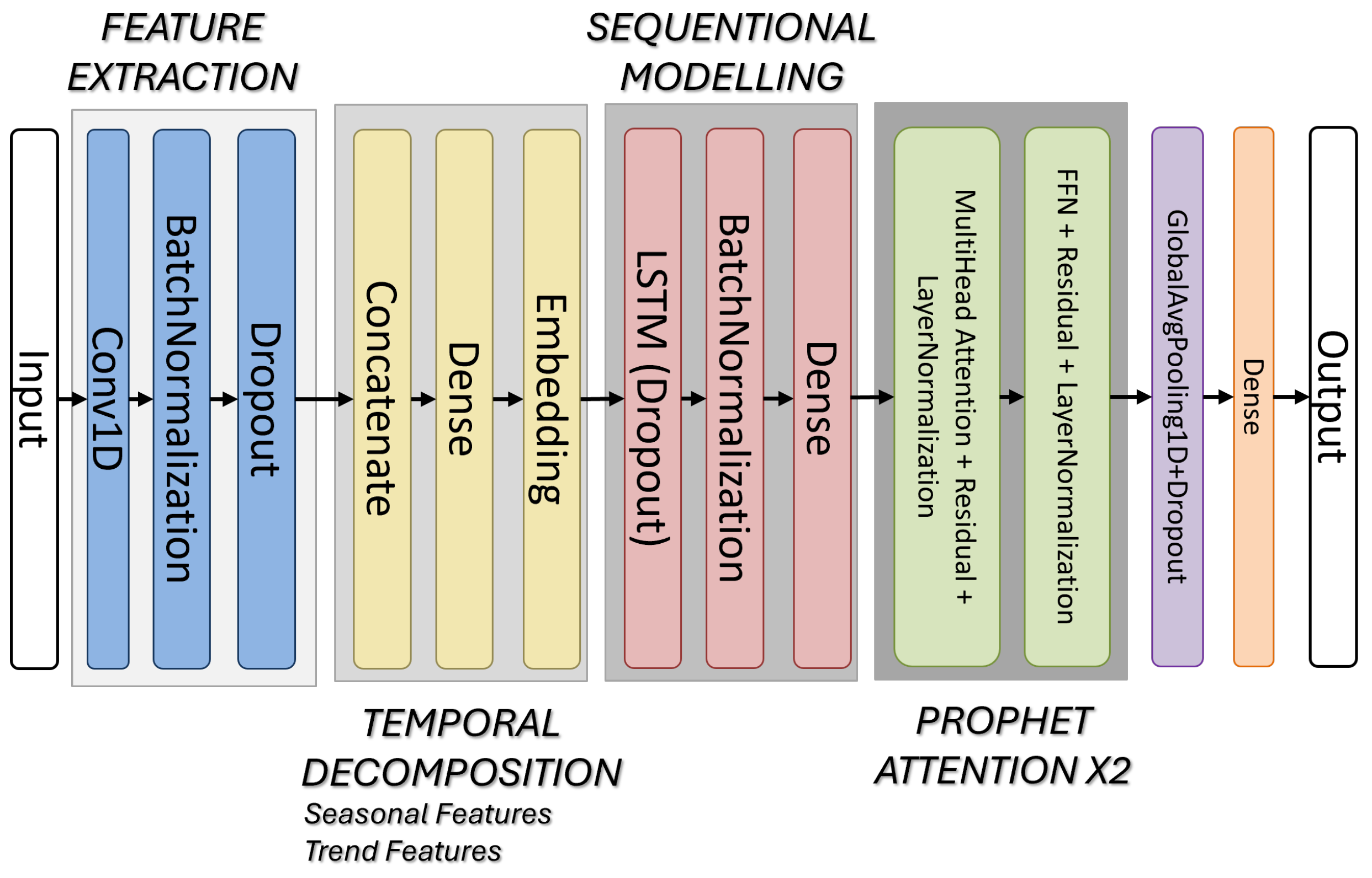 22] have shown promising results, they have been validated primarily on residential benchmarks (e.g., REDD, UK-DALE); their behavior on commercial loads with high inter-unit correlation or industrial loads with high-power transient signatures remains uncharacterized. Third, temporal-decomposition paradigms inspired by Prophet and causal-attention paradigms inspired by GPT have not been adapted or evaluated for NILM, despite their demonstrated effectiveness in related time series forecasting tasks. The present study is positioned to address these gaps by providing a controlled, multi-architecture comparison across three building domains under a unified experimental protocol.