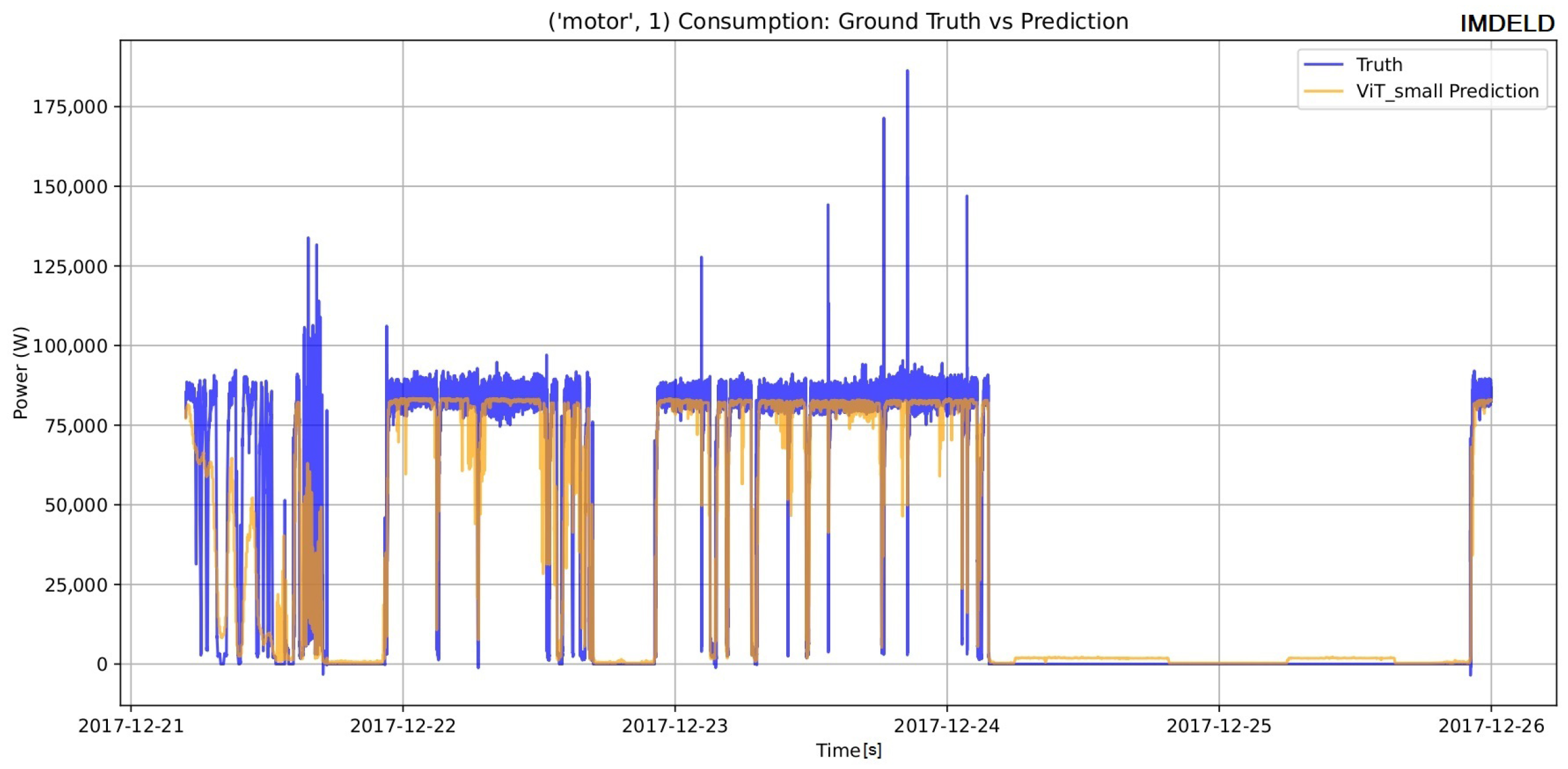 Figure 8 illustrates the ViT-small disaggregation output for Pelletizer I, confirming accurate tracking of high-power state transitions at 1-s resolution.