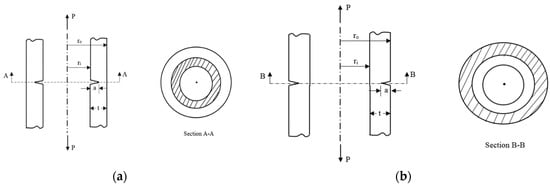 Schematic representation of (a) internal and (b) external circumferential through-wall cracks.