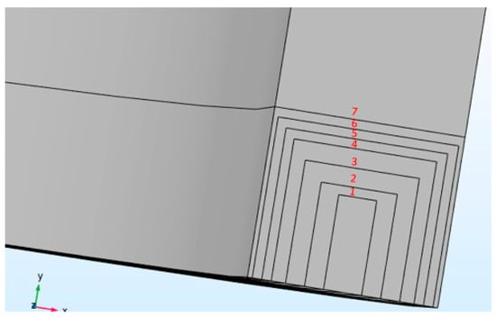 To demonstrate the path independency of the J-integral, the SIF values have been evaluated for seven different rectangular contour paths as shown in Figure 5. The dimensions for the paths used for the sensitivity analysis of the SIF are specified in Table 1 where the last contour path (contour 7) coincides with the thickness of the pipe.