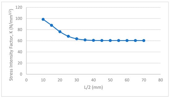 A sensitivity analysis on the pipe with the internal crack was executed to examine the sufficiency and justify the chosen pipe length of 10 times the wall thickness in avoidance of significant end-effects on the SIFs. The result of this is presented in Figure 6 and shows that the SIF converges at a pipe length of 50 mm, which corresponds to 10 times the wall thickness considering symmetry.