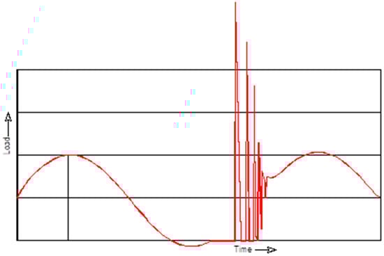 Slack towline followed by a large peak load (≈2.5 × Amplitude) []. Drawing: Authors.