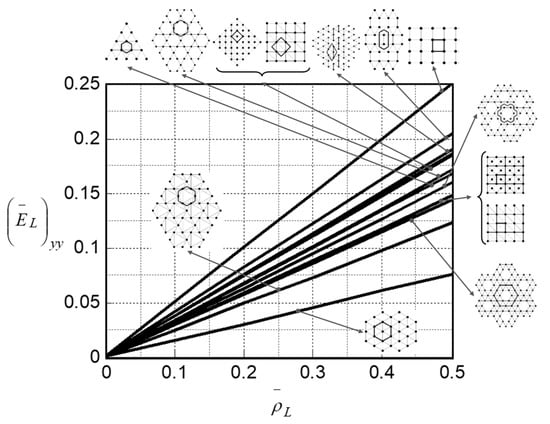- Elsayed, M.S.A.; Pasini, D. Analysis of the elastostatic specific stiffness of 2D stretching-dominated lattice materials. Mech. Mater. 2010, 42, 709–725. [Google Scholar] [CrossRef]