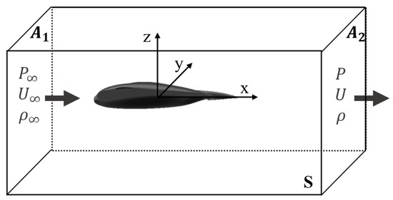 - The flow inside the fluid control volume without the MAV behaves as a uniform freestream parallel to the X-axis (wind tunnel axis) and its velocity is tangent to the walls (all surface of S (control volume) except to A1 and A2).