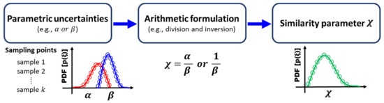 Similarly, the procedures above can be used for other arithmetic formulations. For example, the similarity parameter that defines the inverse of the uncertainty (e.g., ) can be calculated by assuming in (12) is fixed as 1. In summary, procedures to obtain a similarity parameter with arithmetic formulation are shown in Figure 1, which will be further discussed with numerical examples in Section 3.