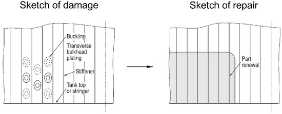 Corrosion leads to material thickness wastage, which can cause underperformance of the load-bearing capabilities of the structural element at hand. For instance, a transverse plating could succumb to shear buckling and a double bottom plating to compressive buckling. Other unwanted results that may occur are crack initiations or material yielding. In order to prevent such structural failures, IACS [1] has developed repair guidelines in which the above concerns are addressed. In case a plate is at buckling risk (or has slightly buckled), common practice is cropping and renewal (with equal or greater thickness than the original), adding an insert plate of increased thickness, or reinforcing the area with additional stiffeners. All these options are hot-working operations, which means that proper preparation of the affected area should be performed, e.g., scrubbing and degassing. This is extremely important in areas inside or adjacent to flammable environments (e.g., repairing a ballast tank’s plating neighboring with the cargo tank). In offshore platforms, in addition to the area’s preparation, its operation might need to pause during hot work.