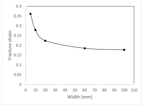 Fracture bending strain in metal sheets with various widths.