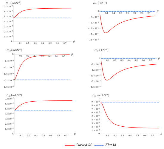 - The flexural coefficient is not affected by because we assumed a geometry curved only in x direction.
