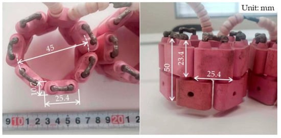 Figure 2 shows the assembly of the ceramic heater for surrounding the nut in a ring shape. The ceramic pieces of 25.4 mm wideth, 23.4 mm hight, and 10.7 mm thickness were assembled to fit the nut of 32 mm wideth and 22 mm hight. The inner diameter and the height of the assembled heater were around 45 mm and 50 mm, respectively. The Ni-Cr electric wire with the diameter of 3.5 mm was covered by the ceramic pieces. The electric resistance of the wire was 0.11 Ω/m. The electric power of the heater was 0.2 kW per ring.