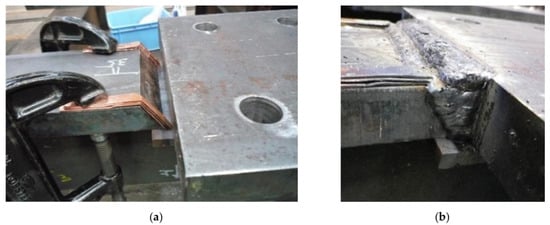 Copper plate insertion of the FTC specimen: (a) before and (b) after welding.