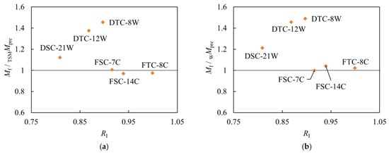 The predicted failure moments of the beam-to-diaphragm joint specimens were calculated according to the procedure described in Section 3.2 and Section 3.3. The results are summarized in Table 5, where TSMMpre and WMpre represent the predicted bending moments of failure calculated using the TSM approach and the Weibull approach, respectively.