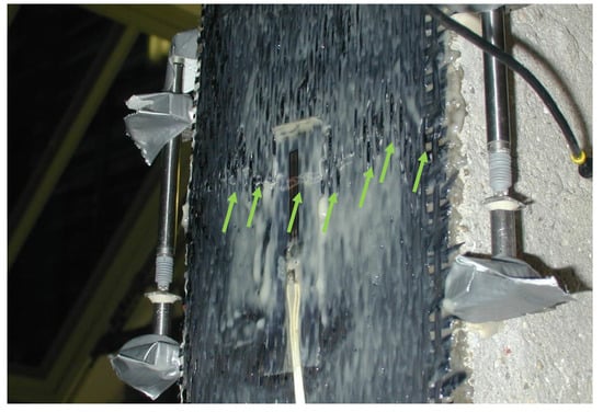 - Benzarti, K.; Chataigner, S.; Quiertant, M.; Marty, C.; Aubagnac, C. Accelerated ageing behaviour of the adhesive bond between concrete specimens and CFRP overlays. Constr. Build. Mater. 2011, 25, 523–538. [Google Scholar] [CrossRef]
