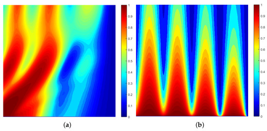 With regard to the time-dependent problem, solutions are evolved for and presented graphically (as colour-coded maps) in the -plane. There is no attempt to provide any specific quantitative measures of the solutions. Rather, the emphasis is to investigate the field patterns that occur for the different models that are investigated coupled with different example parameter values.