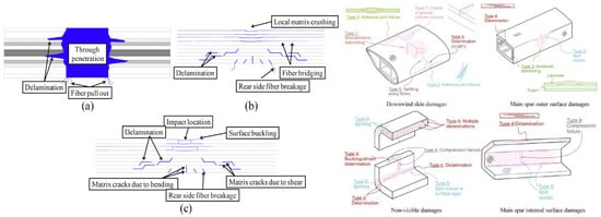 Different types of defects. Deterioration mechanisms caused by impact loading (a) higher, (b) medium and (c) lower [19].