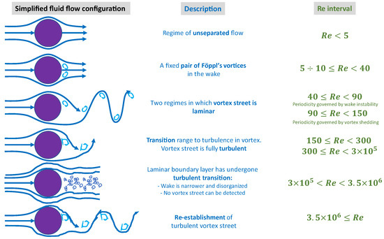 Variation of the von Karman vortex streets as a function of the Reynolds number Adapted from [12].