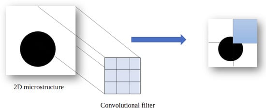 The convolutional layer is the core element of the convolutional neural network. The goal is to detect the most important features by observing the image in its entirety. The convolution layer will focus on each part of the data by analyzing the image by area as shown in Figure 6. In our case, the pattern represents the inclusion; using convolution the model will be able to know the shape and position of the reinforcement in a precise way. The model keeps in memory these characteristics and understands that they represent the selected label. Mathematically speaking, the principle is to drag a window representing the filter on the image and to calculate the convolution product between the filter and each portion of the scanned image. This layer takes as input an image as a 3D tensor and returns what is called a feature-map (also a 3D tensor).