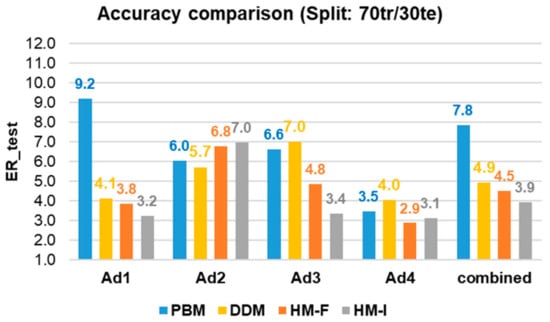 The model optimization was carried out by a five-fold cross-validation (see Appendix A) with grid search, i.e., four folds were employed as the train dataset and one fold as a validation dataset. With a grid search, all potential combinations in the hyperparameter sub-space are generated. After optimization of the model, the hyperparameter combination, which outperforms the others, was selected. The five-fold cross-validation also contributes to avoiding issues with overfitting []. The hyperparameter space for the optimization for the DDM (and HMs) is given in Table 5.