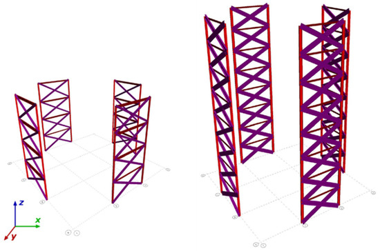 Diagrid system of 4-story vs. 8-story models.