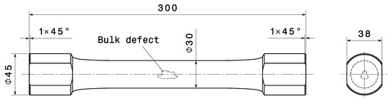 To extend the existing experimental database reported in [10] towards higher stress ratios, additional high-cycle fatigue experiments of bulk defect-afflicted large-scale specimens made of G12MnMo7-4+QT were conducted. The utilised specimen geometry was identical to the one investigated in [10] and is presented in Figure 8. It should be noted that although the specimen geometry was the same, each sample was affected by an arbitrarily shaped bulk imperfection possessing a unique geometry.