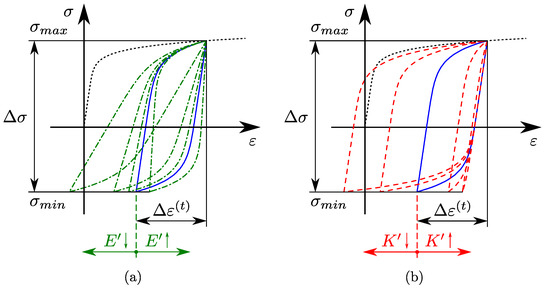 To describe in the stabilized material condition in terms of the acting stress , the formulation according to Ramberg–Osgood given in Equation (4) is utilised [94].